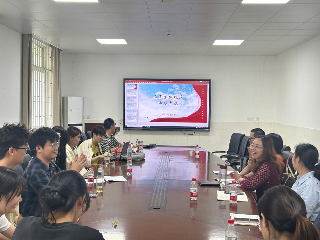 随后,梁建功聚焦《学术道德规范》讲授专题党课。他逐一解读了学校关于学术道德规范方面的有关文件,分享了学术不端的典型案例,并与会师生就学术诚信、学术道德的重要性进行了深入探讨。与会党员一致认为,学术道德是保障学术研究真实性和可信度的重要基础。广大师生必须重视学术道德,严格遵守道德规范和原则,以促进科学研究的健康发展。同时,作为高校师生要主动提高道德意识和责任感,自觉地遵循学术道德规范,维护学术界的良好形象和信誉,推动科学研究的不断进步。