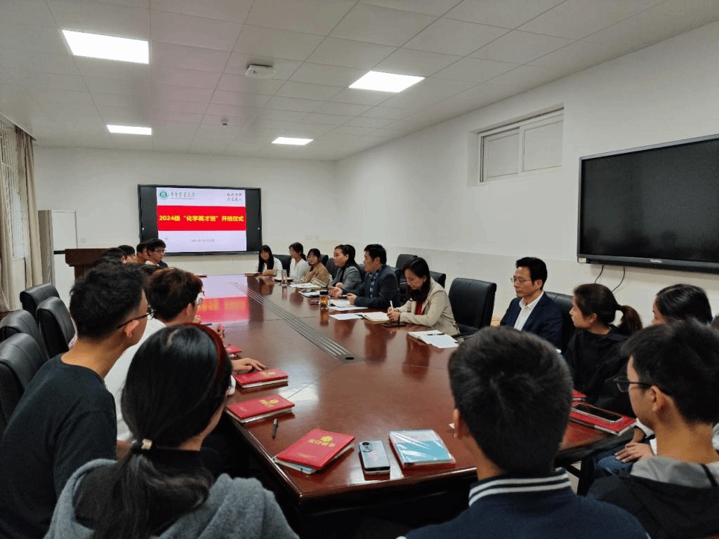 2024级“化学英才班”开班仪式在化学楼A106会议室举行。学院党政班子成员、化学系班子成员、新生班主任及英才班班主任、2024级“化学英才班”全体学生参加仪式并展开交流。开班仪式由副院长曹敏惠主持。