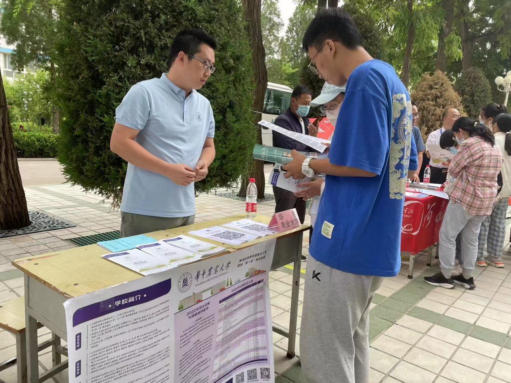 6月25日-6月27日,副教授黄德康老师和毕业于京山一中的丁聪老师来到了京山和沙洋招生,回到阔别多年的母校,丁老师满怀期待,早早准备好了喜报和招生咨询群打印好的二维码,黄德康老师也说:“今年是我参加工作以来第一次招生,最大的感受就是华农很好,身为华农人很光荣。在二本、差一点的一本院校桌前,可以看到大量的家长、同学在咨询,来咨询华农的要少的多。这并不是因为大家不喜欢我们学校,因为咨询和我们同档次的学校的同学也很少。这说明华农是很厉害的一所学校,全国只有很少量的学生才能有幸来到华农。通过这次招生,让我知道我们要坚定不移的把华农这个品牌继续做大做强,通过贡献自己的智慧、力量推动华农向更高层次发展,吸引更多优质生源。”