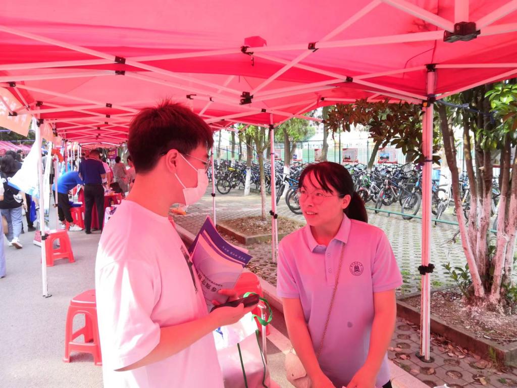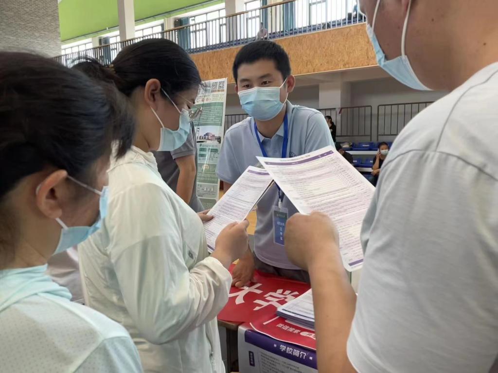 6月24日-6月27日,项勇刚教授和程思源老师共同前往安徽招生,在安徽的4天3晚中,项老师和程老师共到访5所中学,行程安排虽满,但是每一站两位老师都认真对待,本科毕业于华农应用化学专业的项老师不仅对理工科专业侃侃而谈,更在家长咨询到文史类专业时给出了丰富的建议,项老师以其丰富的知识储备,吸引了大批家长学生驻足,有的时候,光是和一位同学聊天,项老师就可以聊上半个小时。回来后,他依然每天在安徽招生群中答复同学们的问题,他说:“我是很愿意为学校去招生的,吸引优质生源来到我们的学校,我也希望未来学院的招生队伍能更加壮大!”