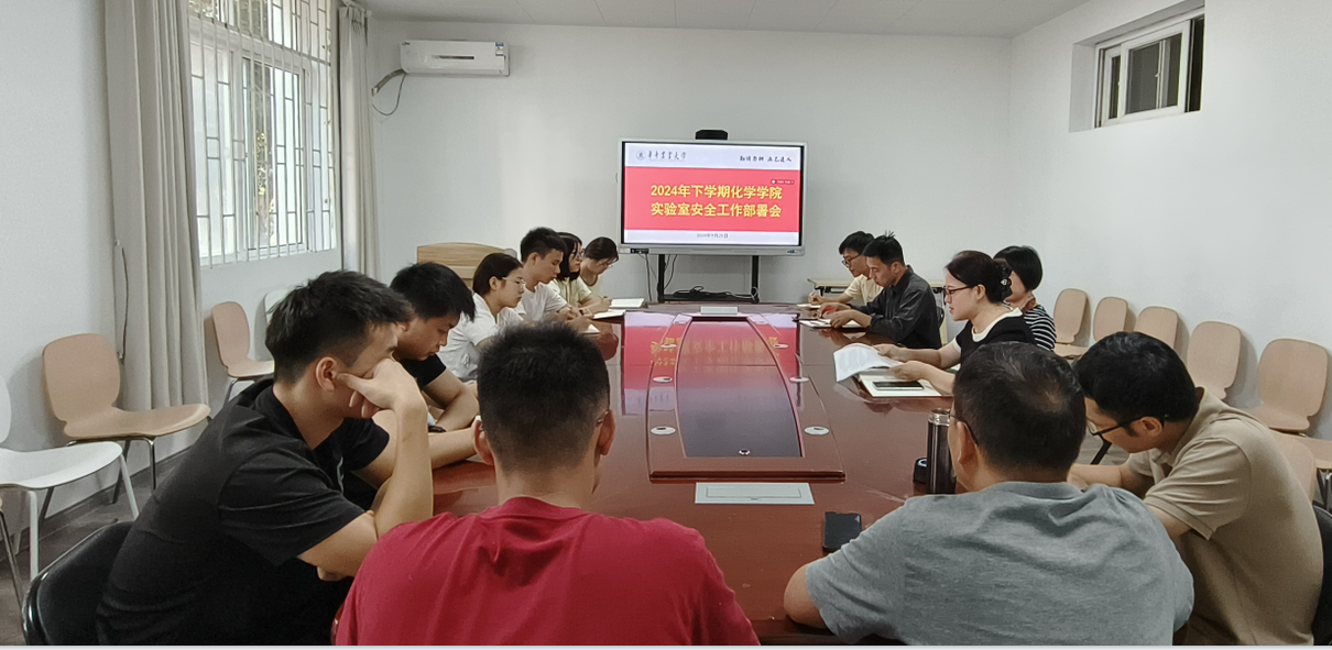通讯员:(张 涛)为进一步强化实验室安全教育与管理,排查和消除潜在安全隐患, 2024年9月25日下午,在化学楼A104举行了2024年下学期安全工作部署会议。此次会议由学院副院长周静舫主持,化学实验教学中心、理化分析中心、各科研团队安全负责人和研究生安全员参会。
