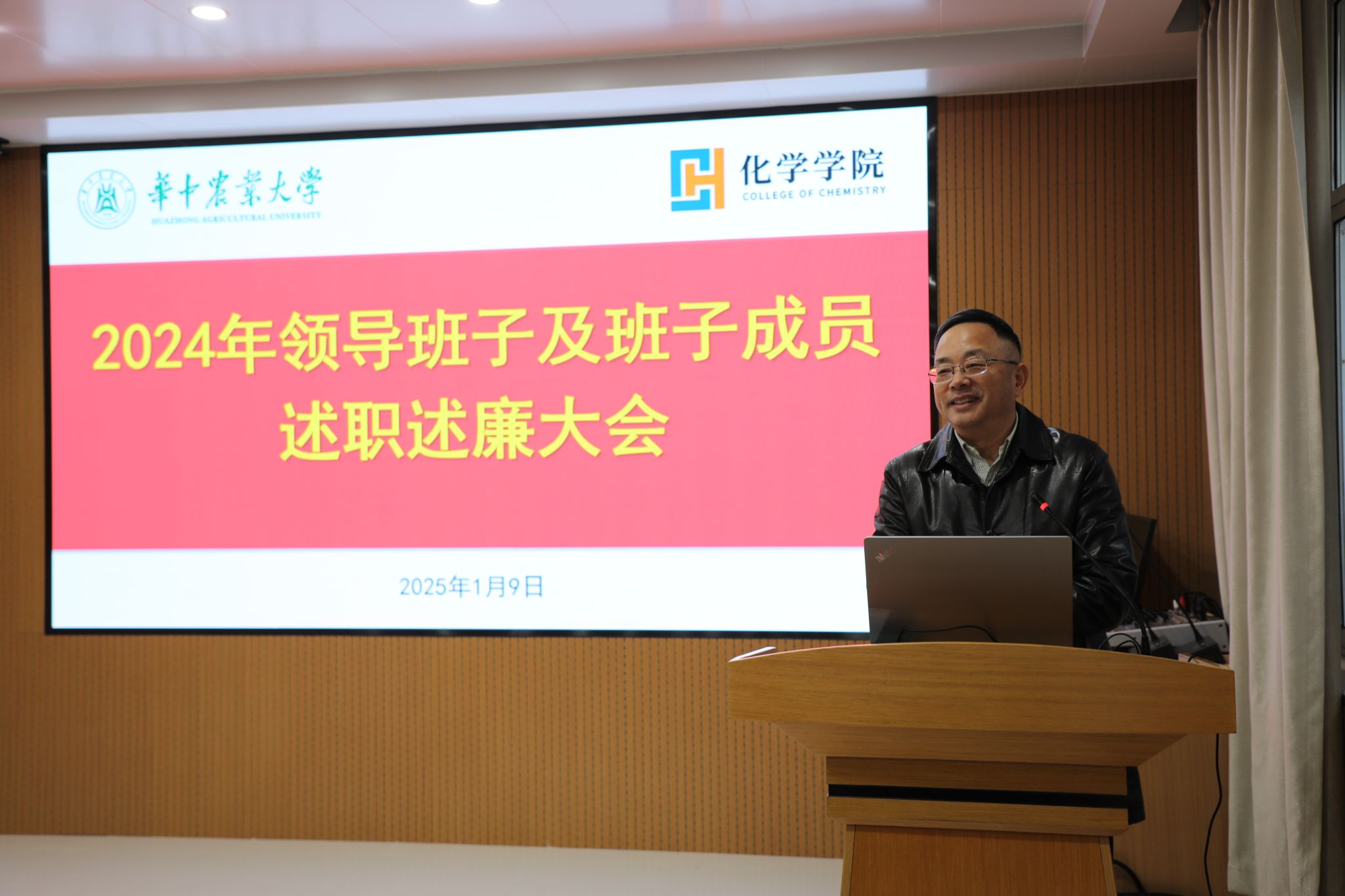 领导班子及班子成员2024年度述职述廉大会在化学楼A102报告厅举行,校党委常委、副校长青平及学校督导工作人员出席会议,全体教职工参加会议,会议由学院党委书记涂俊才主持。